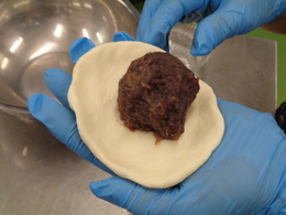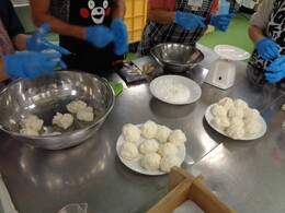 令和7年8月26日(火曜日)、農業活性化センター「アグリメイト」でくまがや農業協同組合女性部のかたを講師にお迎えし、「米粉を使ったおやき教室」が開催されました。米は小麦に比べアミノ酸バランスに優れ、高い栄養価があります。ごはんとは違う食べかたで栄養を摂取できる米粉は、食料自給率の向上につながる食品としても期待されています。つぶあんとねぎ味噌のおやきを作りました。