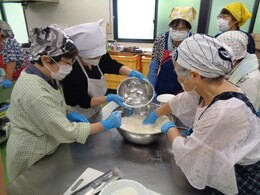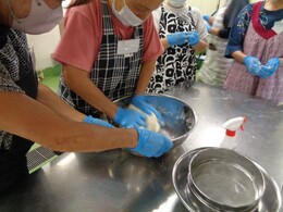「先生が丁寧に教えてくださって、楽しく作ることができた。」「思っていたより簡単にできた。」「材料が全てスーパーなどで入手しやすいものなので、手軽にできそう。」「米粉が入ることで、もちもち感が出ておいしかった。」などの感想をいただきました。