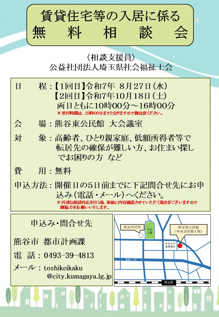賃貸住宅等の入居に係る無料相談会のお知らせ