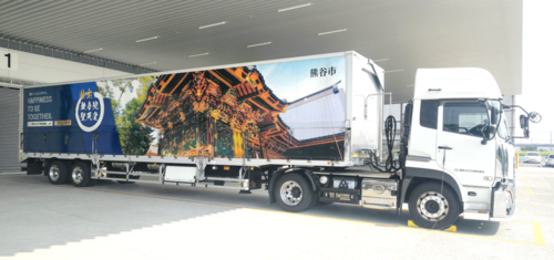 熊谷物流センターを竣工した際に、妻沼聖天山などの市の観光資源の写真をラッピングしたトラックを導入しました。